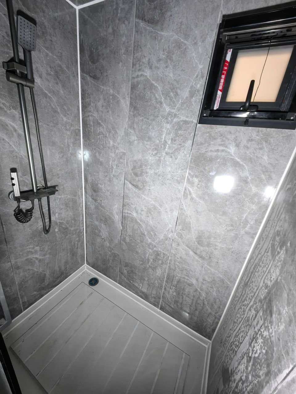 – Pavimento vinílico imitación madera, de fácil mantenimiento y estético, aportando calidez y elegancia al interior.