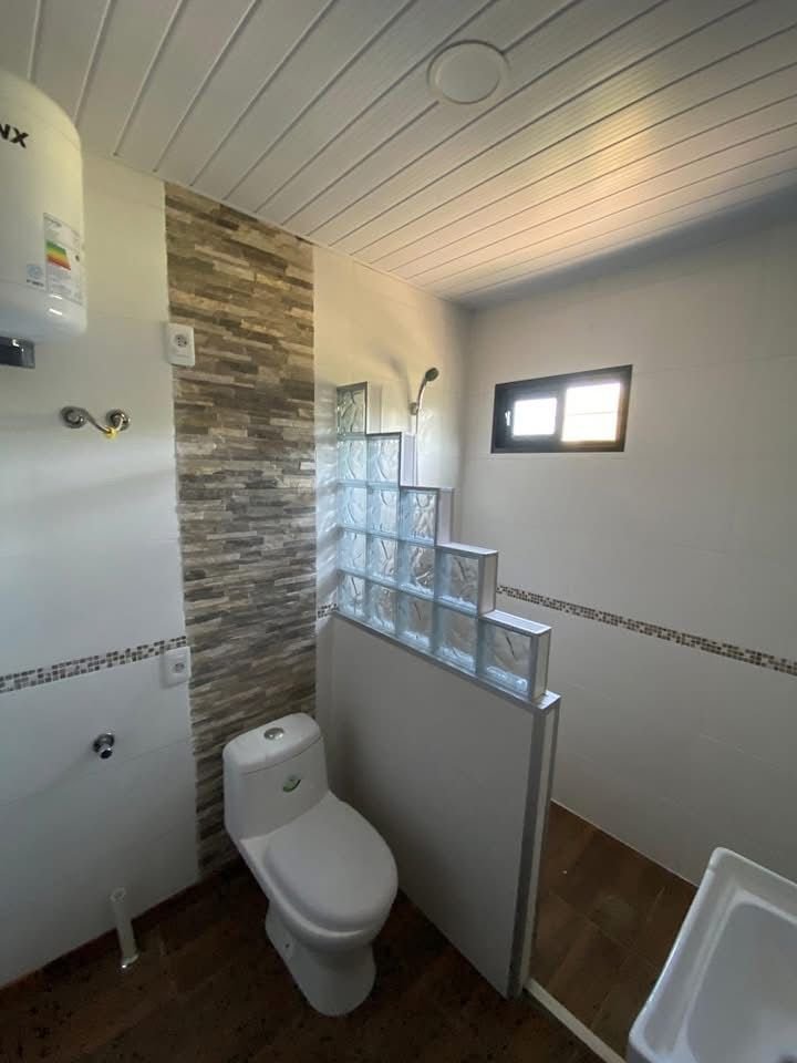 – Revesitmiento exterior en frente y fondo en siding con detalle en cerámica imitación piedra.